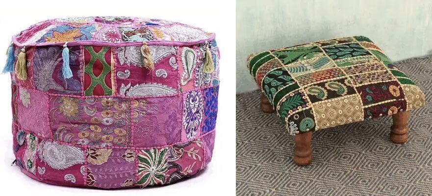For all those who don’t know, an Indian ottoman is a form of stool or footstool with beautiful traditional fabrics. They can be in the shape of poffee or a cushion on wooden legs. The only common thing between them would be their vibrant colours, textures and prints.